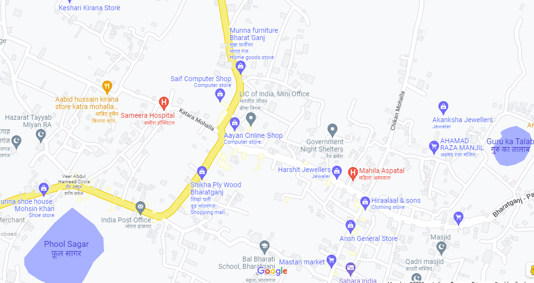 The Bharatganj Nagar Panchayat has population of 28,349 of which 14,467 are males while 13,918 are females as per report released by Census India 2011. Population of children with age of 0-6 is 2572 which is 15.74% of total population of Bharatganj (NP). In Bharatganj Nagar Panchayat, Female Sex Ratio is of 930 against state average of 912. Moreover, Child Sex Ratio in Bharatganj is around 1000 compared to Uttar Pradesh state average of 902. Literacy rate of Bharatganj city is 65.48% lower than state average of 67.68%. In Bharatganj, Male literacy is around 75.42% while female literacy rate is 54.64%. Bharatganj (NP) has following religion data according to 2011 census: Muslim (Sunni)- 62.45%, Hindu- 36.92%, Other- 0.63%. Schedule Caste (SC) constitutes 12.27% of total population in Bharatganj. The Bharatganj currently does not have any Schedule Tribe (ST) population. Bharatganj Nagar Panchayat has total administration over 2,390 houses to which it supplies basic amenities like water and sewerage. It is also authorize to build roads within Nagar Panchayat limits and impose taxes on properties coming under its jurisdiction